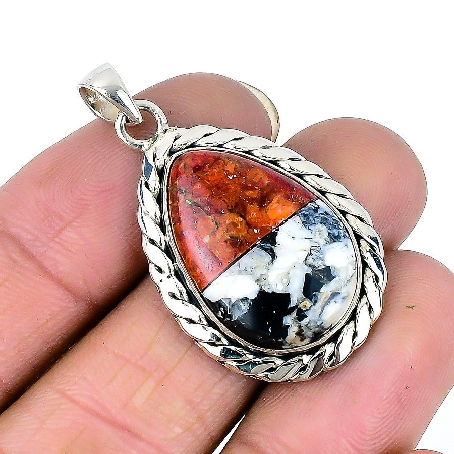 Red Coral White Buffalo Stone Birthday Unique Mother Pendant Jewelry 925 Silver