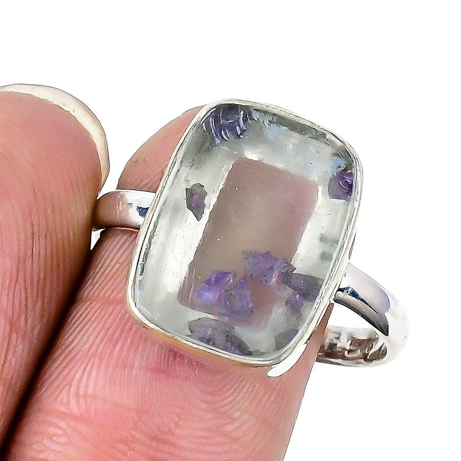 Amethyst Quartz Crystal Stone Solid Silver Anniversary Statement Ring Jewelry