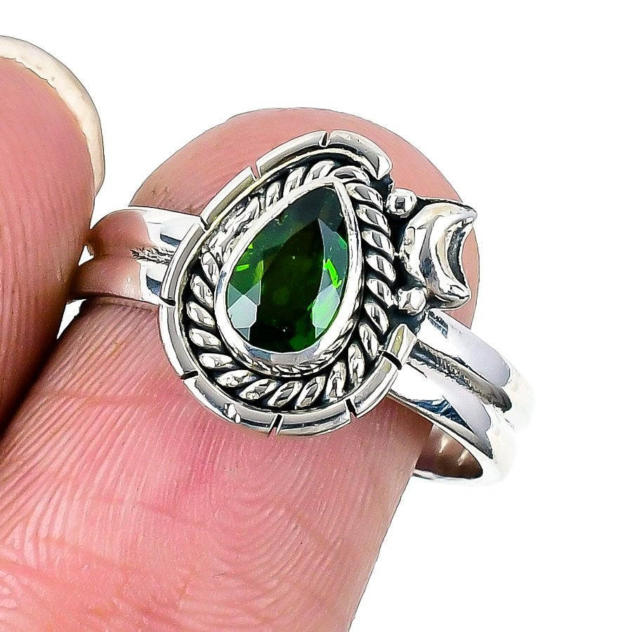 Chrome Diopside Stone Sterling Silver Art Deco Statement Ring Jewelry Size 9.5