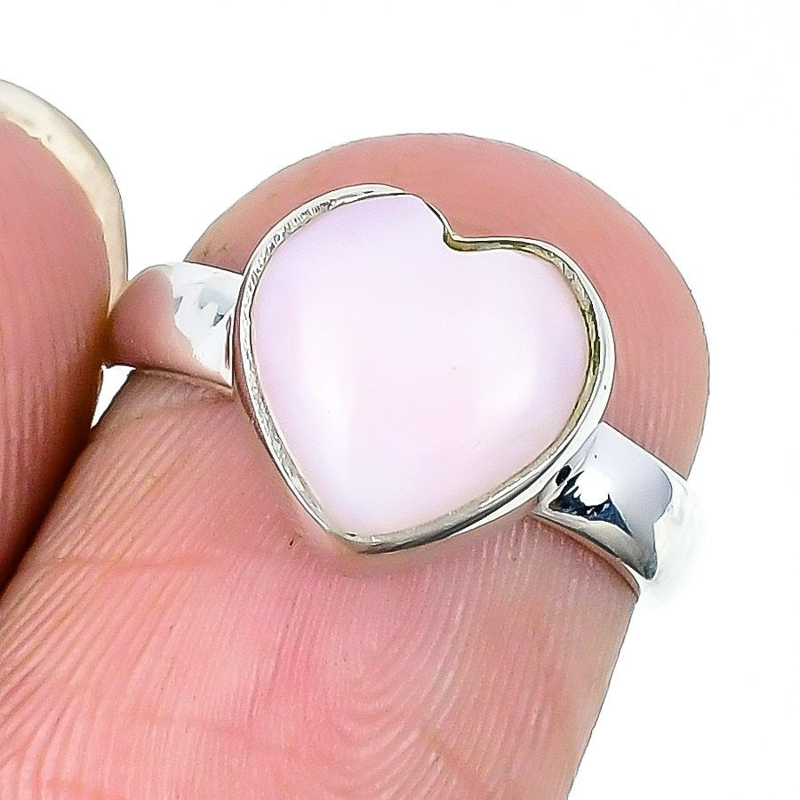 Natural Pink Opal Solid Silver Statement Elegant Best Daughters Gift Ring US 5