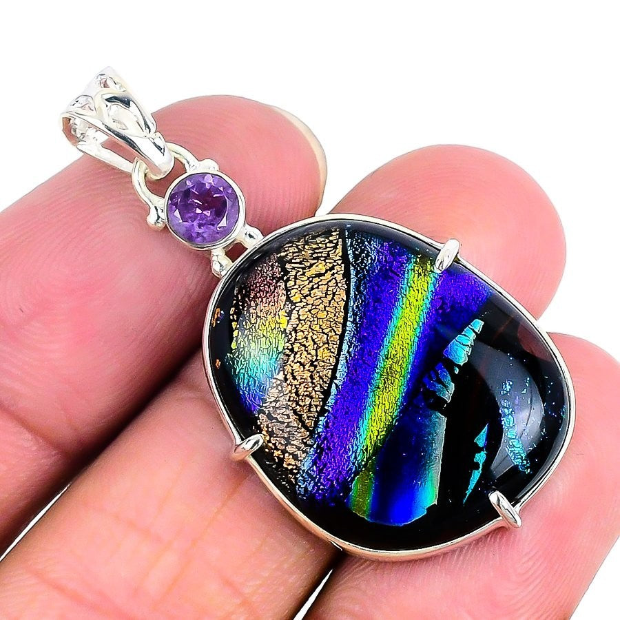 Mexican Dico Glass Stone 925 Silver Daughter Gift Anniversary Pendant Jewelry