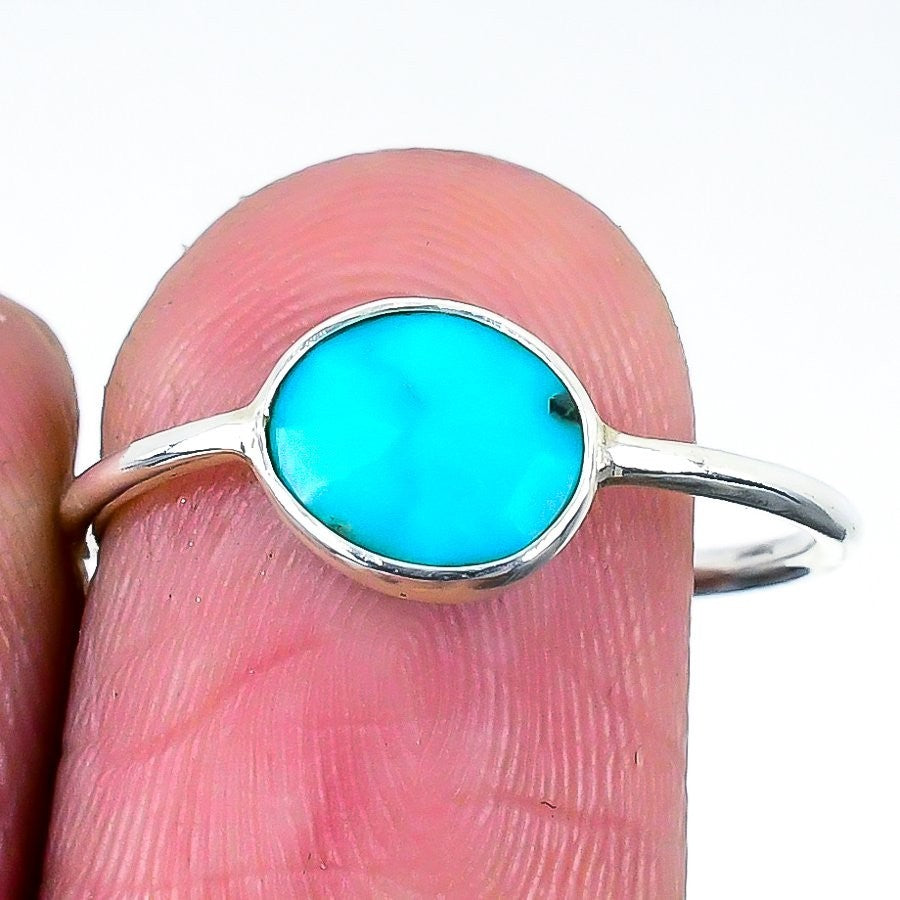 Arizona Turquoise Gemstone Sterling Silver Promise Band Engagement Ring US 8.5