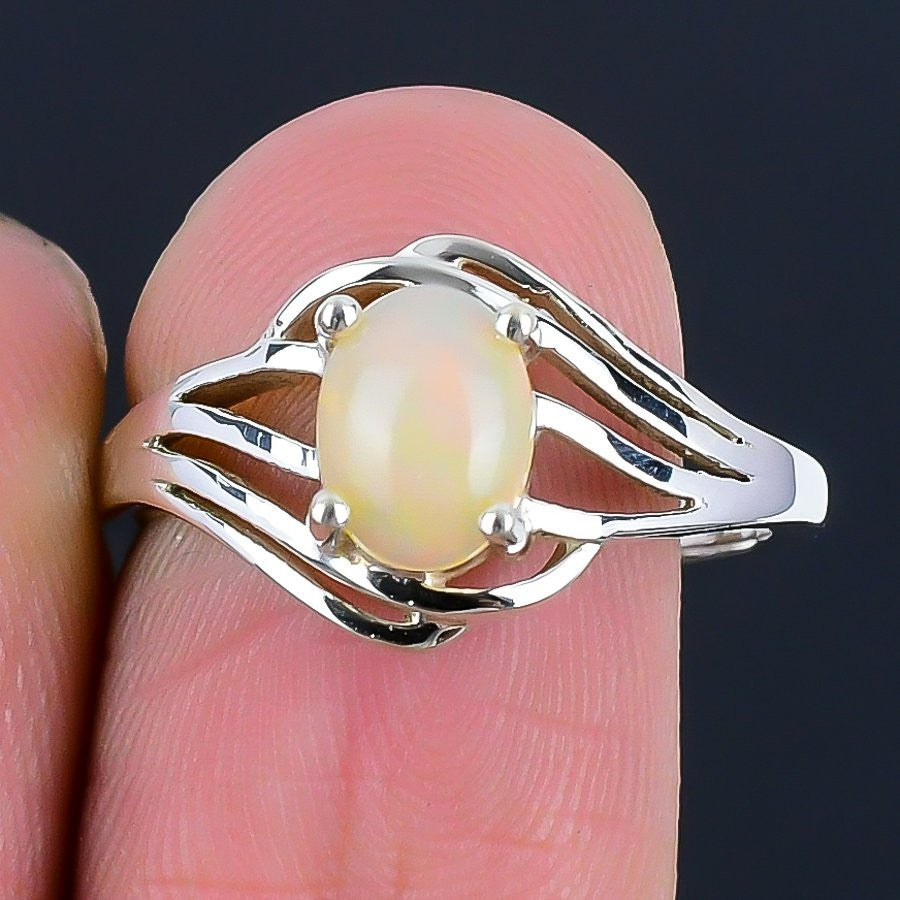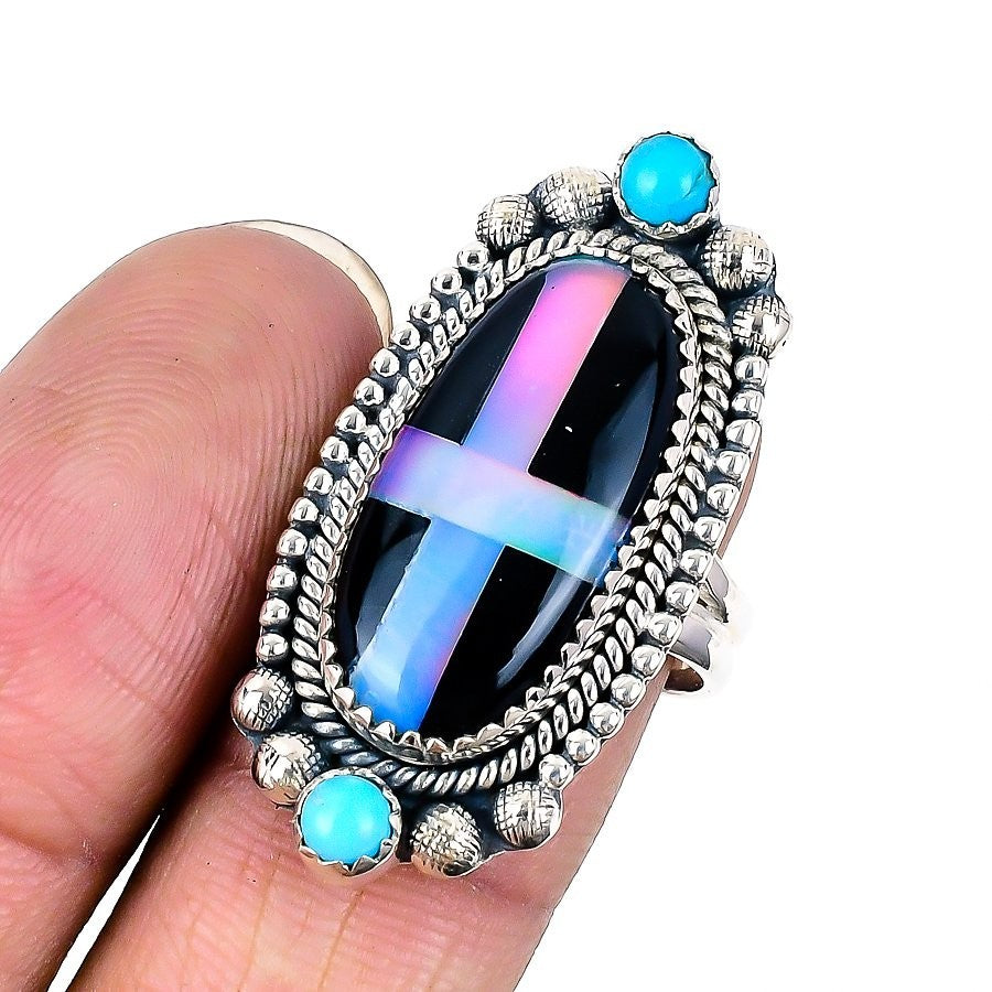 Natural Aurora Opal 925 Silver Wife Statement Art Deco Artisan Boho Ring Jewelry