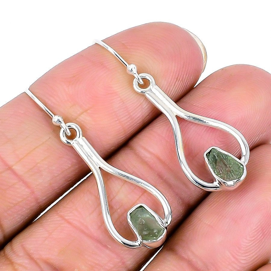 Daughters Day Deal Moldavite Stone Solid Sterling Silver Wedding Drop Earrings