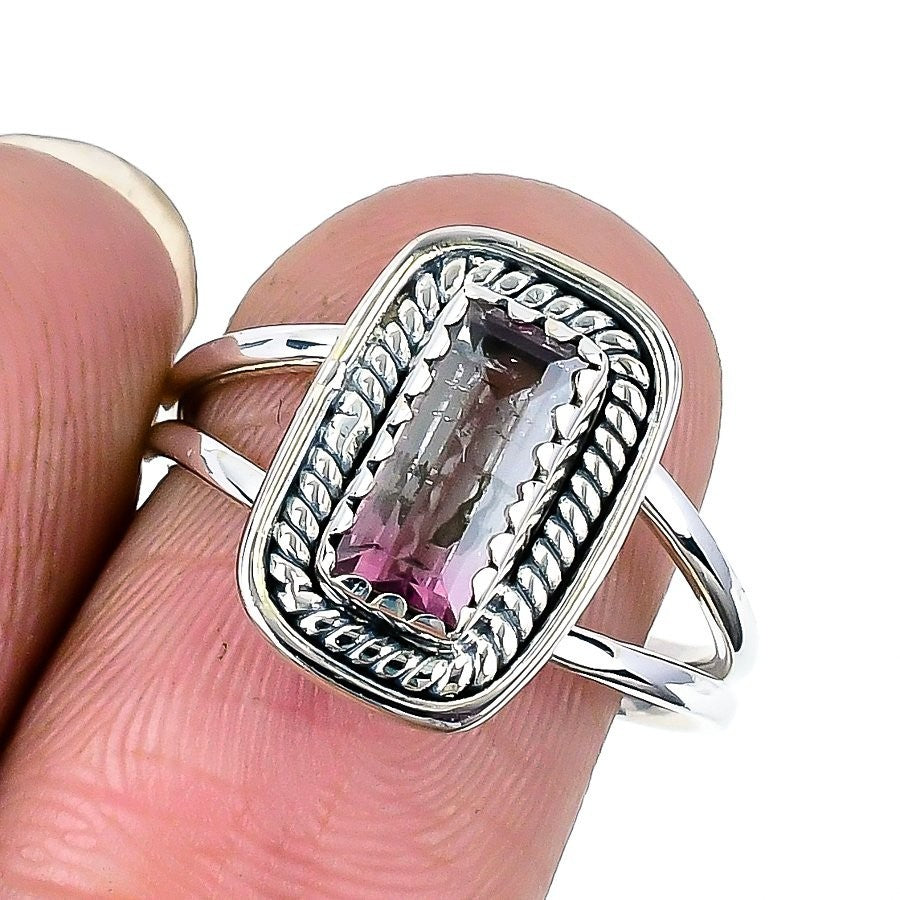Watermelon Tourmaline Gemstone Elegant Statement Ring 925 Sterling Silver US 8.5