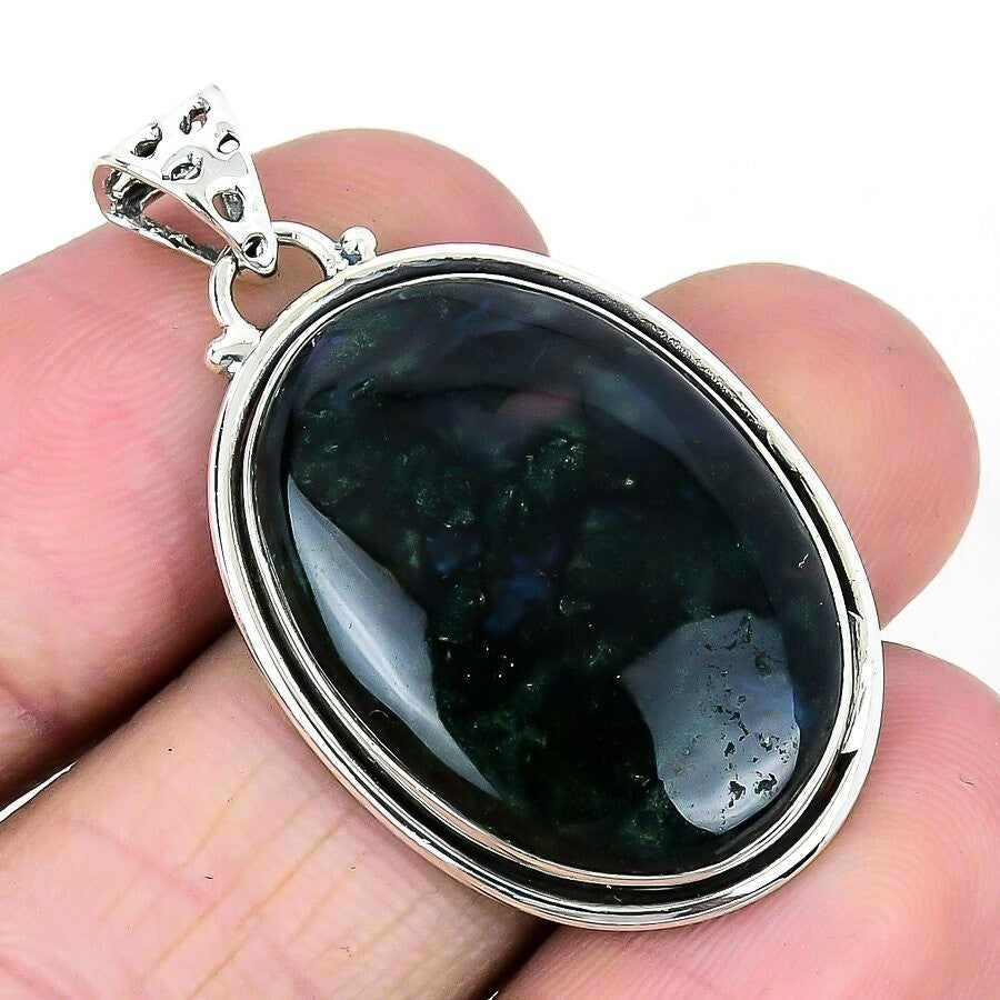 Moss Agate Stone 925 Sterling Silver Ethnic Elegant Birthday New Pendant Jewelry