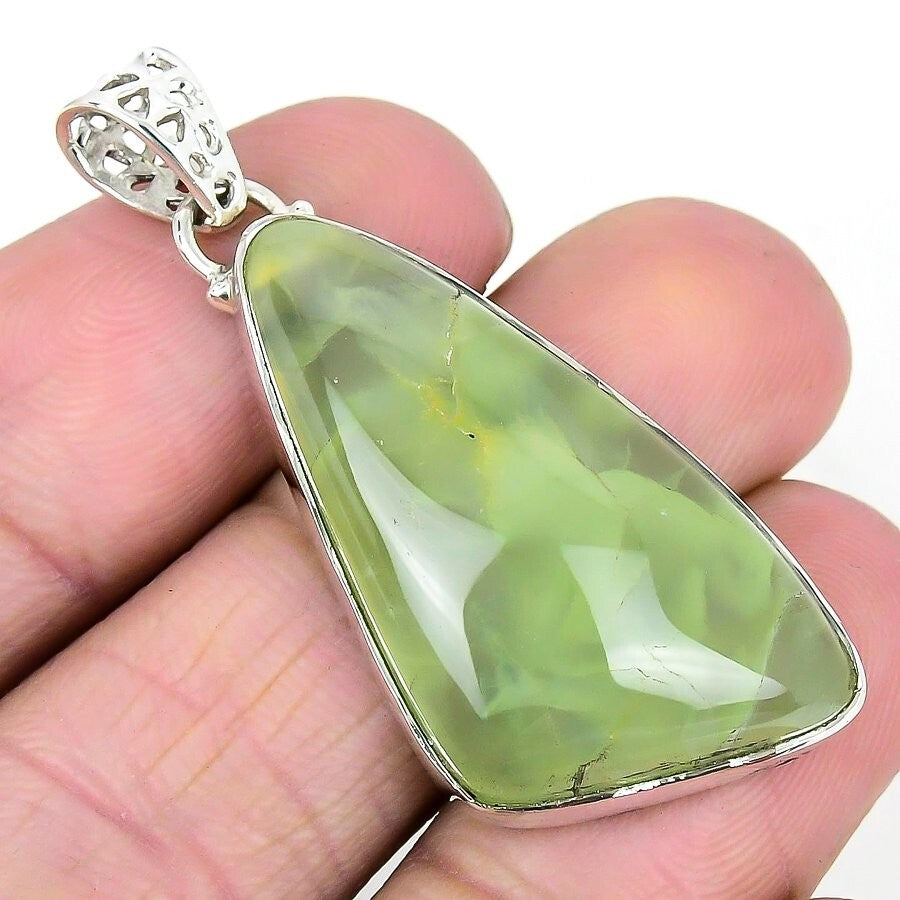 Prehnite Stone 925 Silver Channel Set Anniversary Ethnic Boho Sister New Pendant