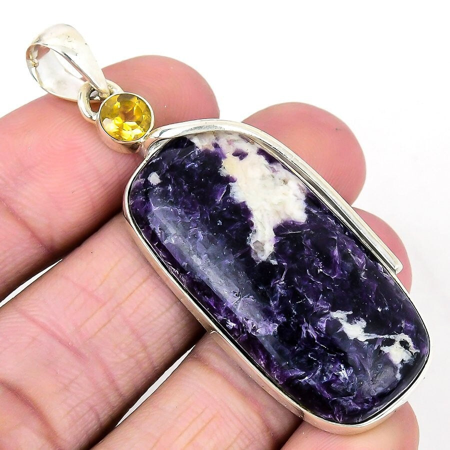 Lepidolite Stone Gemstone Solid Silver Birthday Boho Trendy Wife Pendant Jewelry