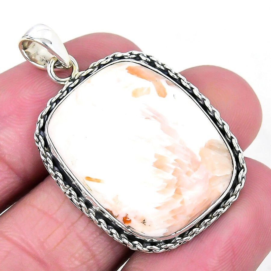 Orange Scolecite Gemstone 925Ā SolidĀ Silver Sister Channel Set Pendant Jewelry