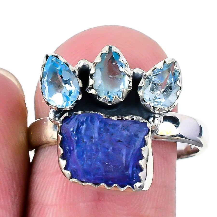Tanzanite Quartz Stone Solid Sterling Silver Cluster Mother Birthday Ring Size 9