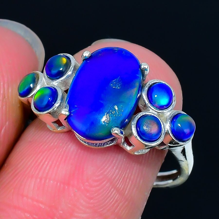 Natural Aurora Opal Sterling Silver Anniversary Statement Ring Jewelry Size 8.5