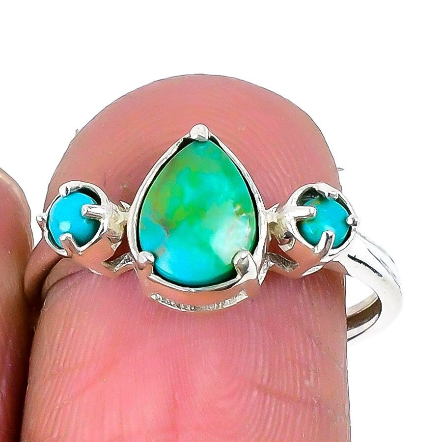 Natural Arizona turquoise Sterling Silver Birthday Statement Ring Jewelry US 7