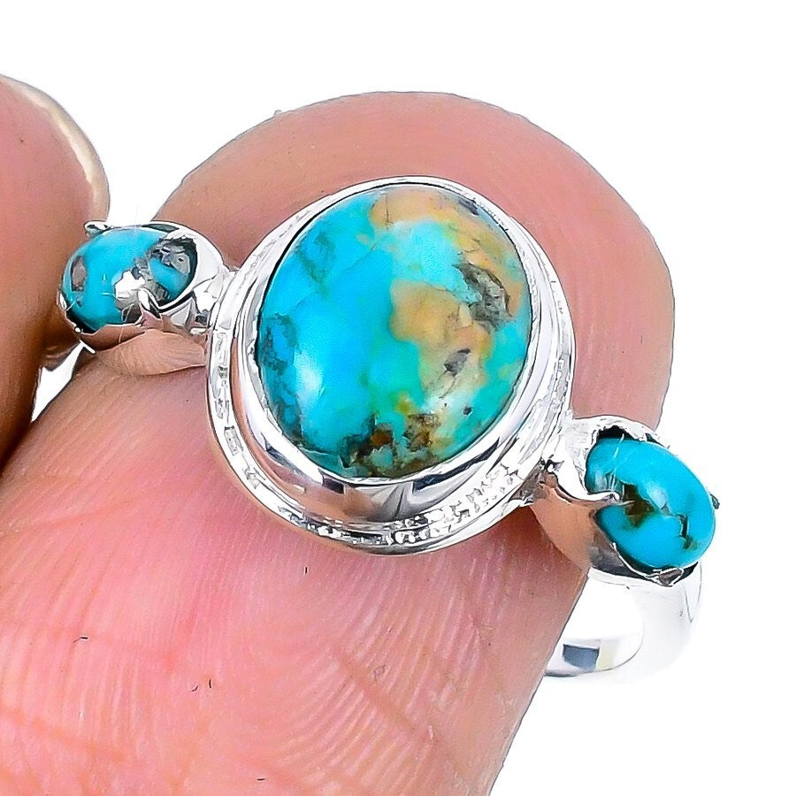 Arizona turquoise Stone Elegant Statement Wife Ring Jewelry Sterling Silver US 8