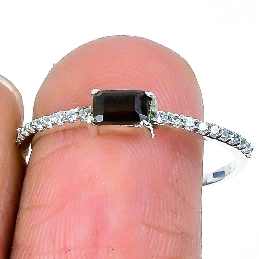 Black Rutile Faceted Stone Elegant Statement Ring Jewelry 925 Sterling Silver