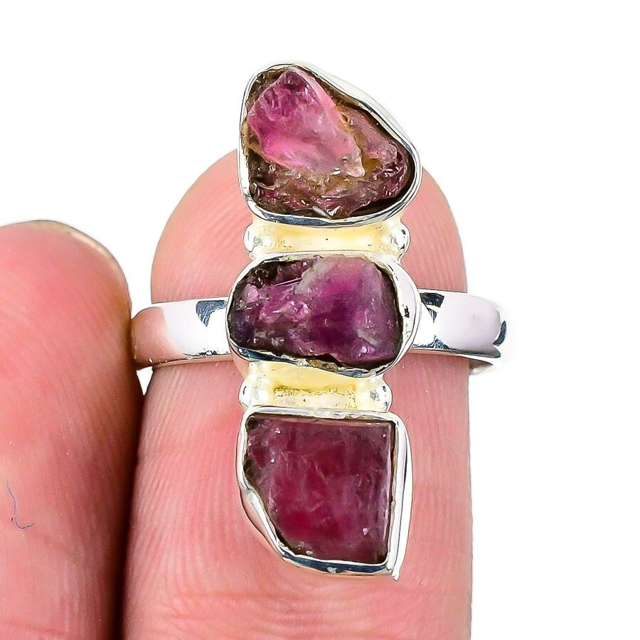 Pink Tourmaline Stone Statement Art Deco Ethnic Ring Jewelry Size 7 925 Silver