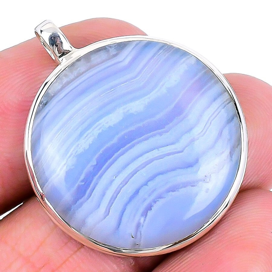Third Eye Chakra Blue Lace Agate Stone Sterling Silver Wedding Pendant Jewelry