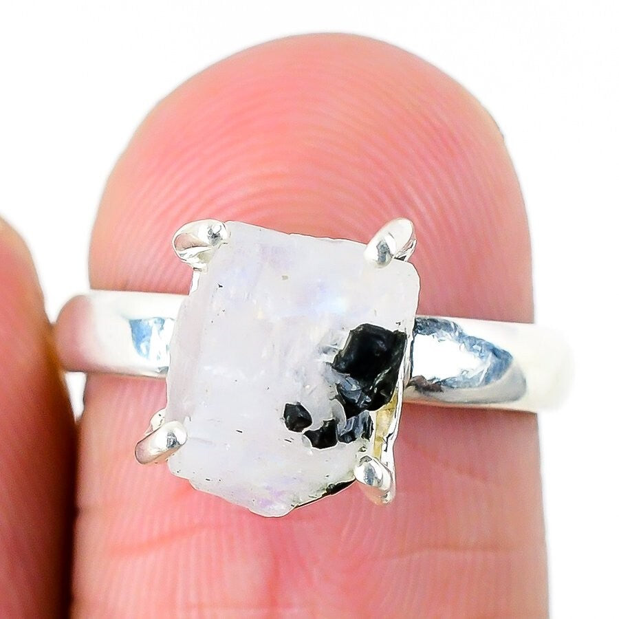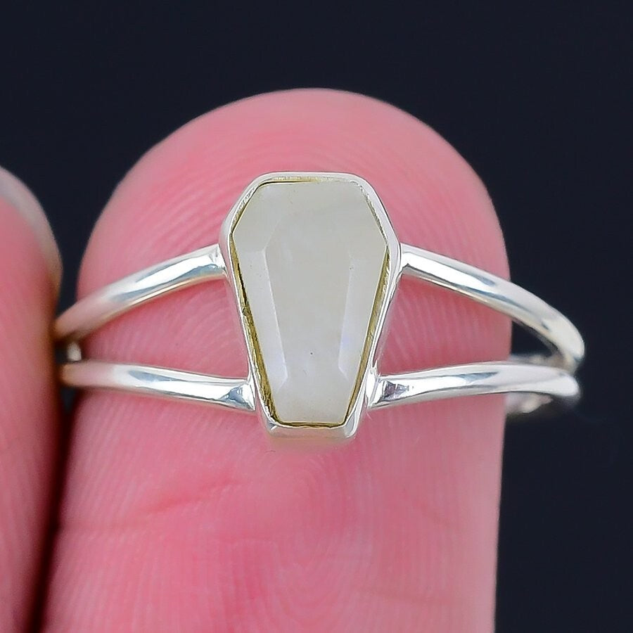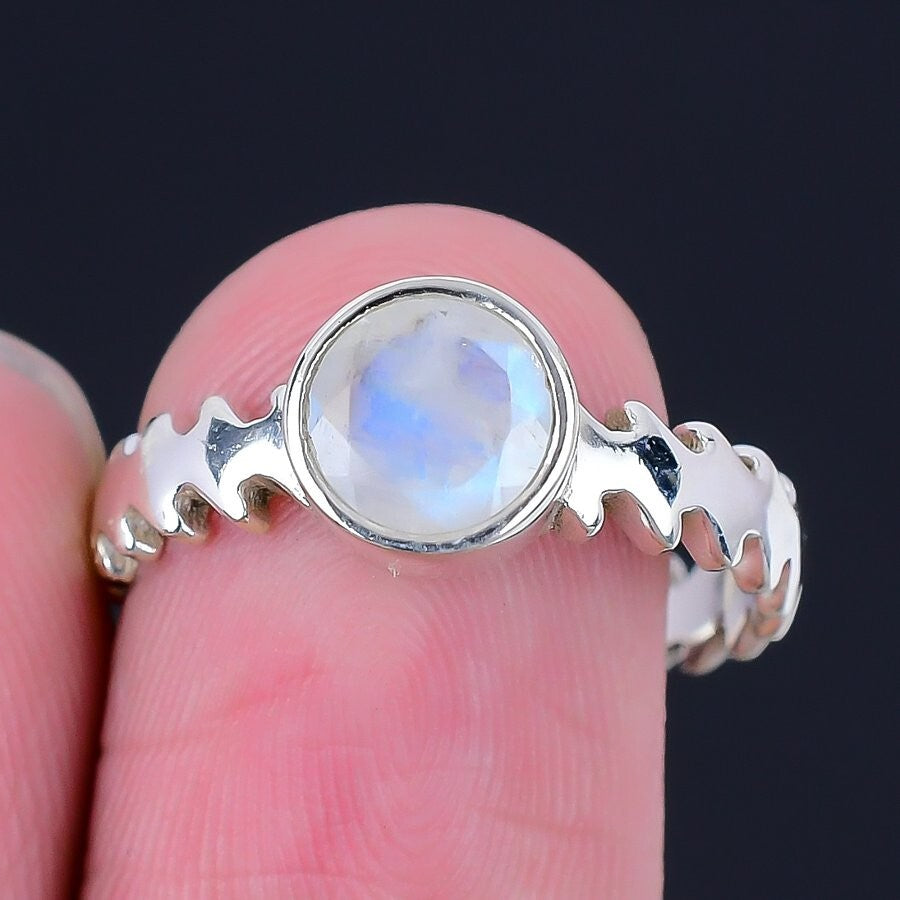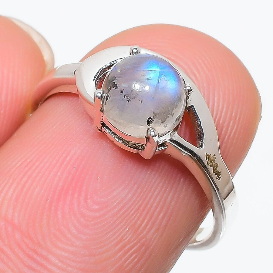 Rainbow Moonstone Stone 925 Silver Birthday Statement Trendy Daughter Ring US 6