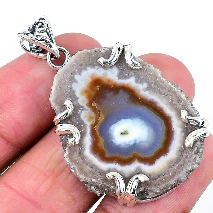 Geode Druzy Gemstone 925 Sterling Silver Mother Anniversary Trendy Boho Pendant