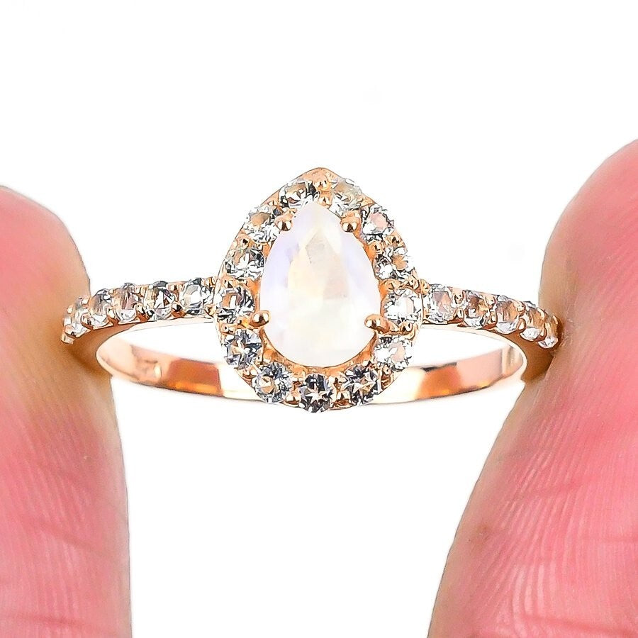 Crown Chakra Rainbow Moonstone Stone 925 Sterling Silver Statement Wife New Ring