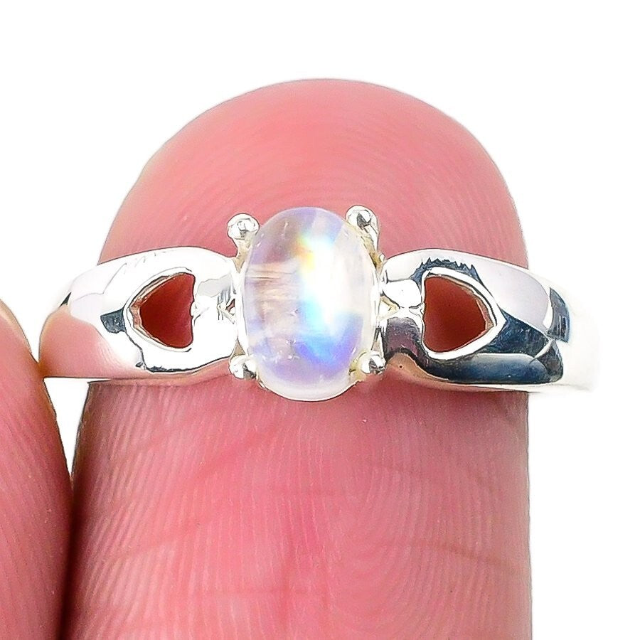 Rainbow Moonstone Stone 925 Silver Daughter Birthday Statement Boho Ring Size 6