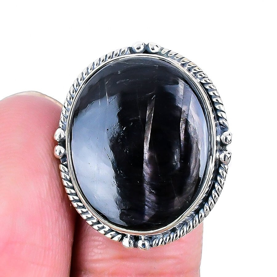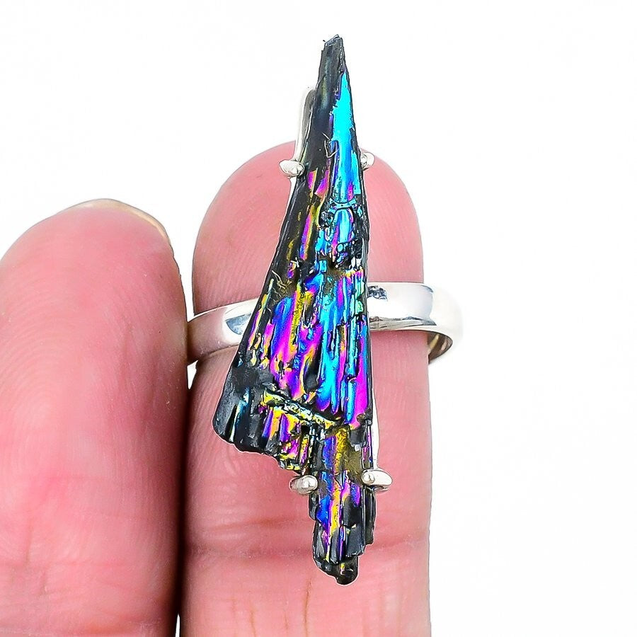 Natural Titanium Kyanite 925 Silver Handmade Artisan Cluster Unique Ring Jewelry