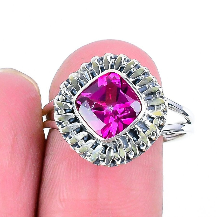 Pink Topaz Stone Trendy New Cluster Mother Wedding Ring Size 9.5 Sterling Silver