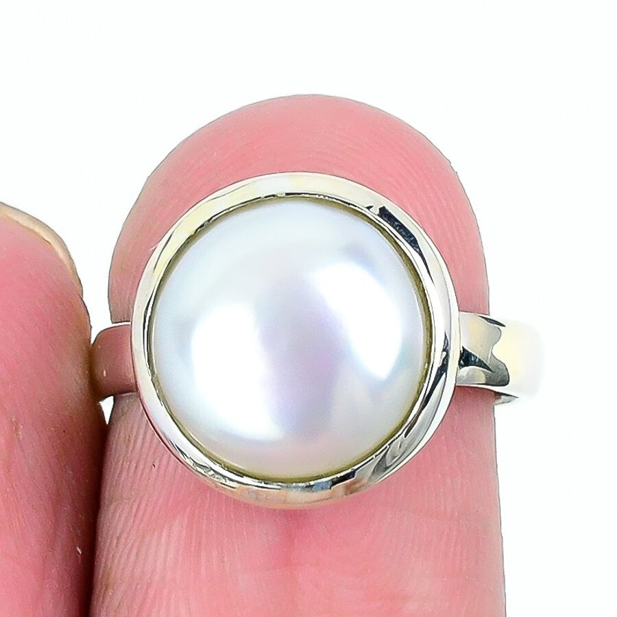 Pearl Stone Solid Sterling Silver Wedding Birthday Cluster Wife Boho Ring Size 9