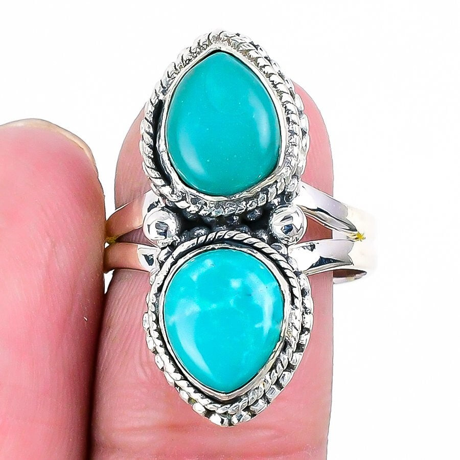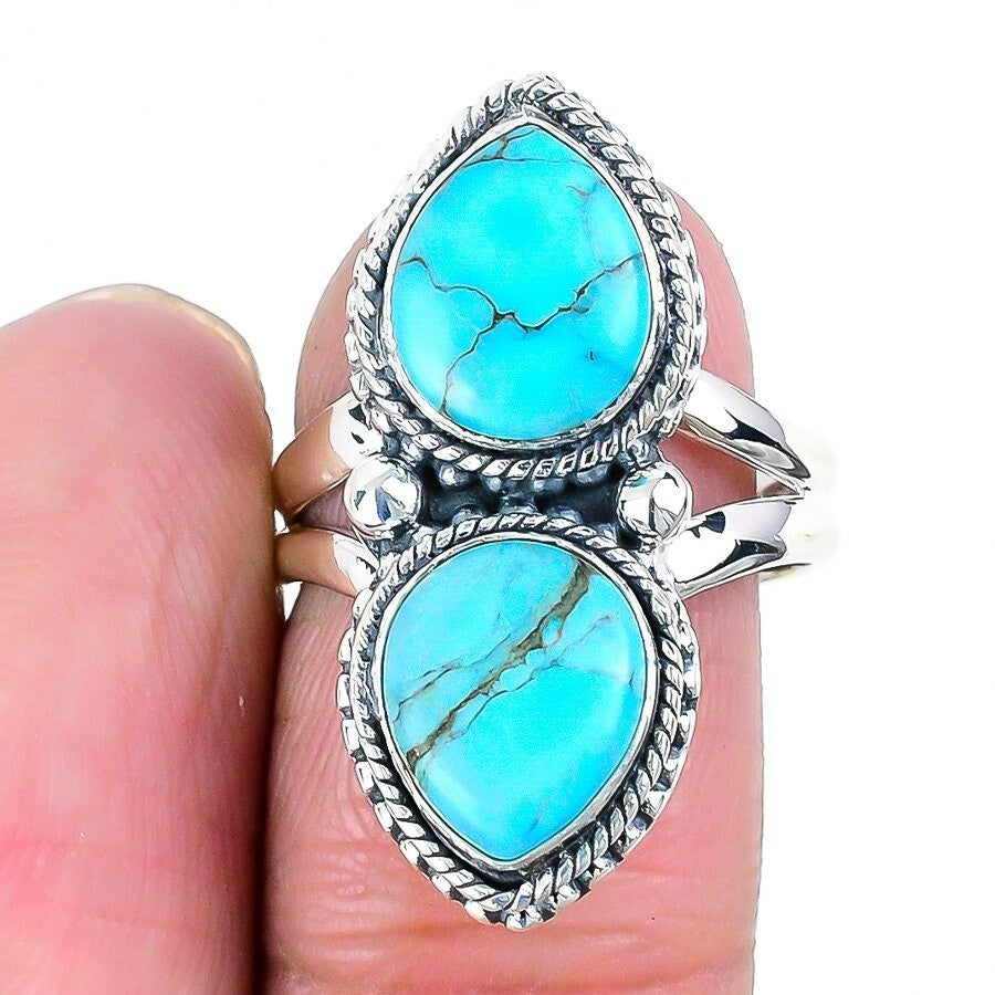 Throat Chakra Tibetan Turquoise Stone 925 Silver Cluster Anniversary Sister Ring