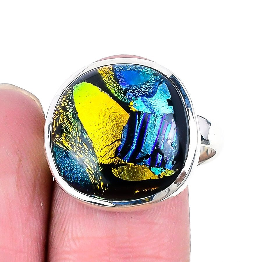 Mexican Dichroic Glass Gemstone Sterling Silver Cluster Ring Jewelry Size 8.5