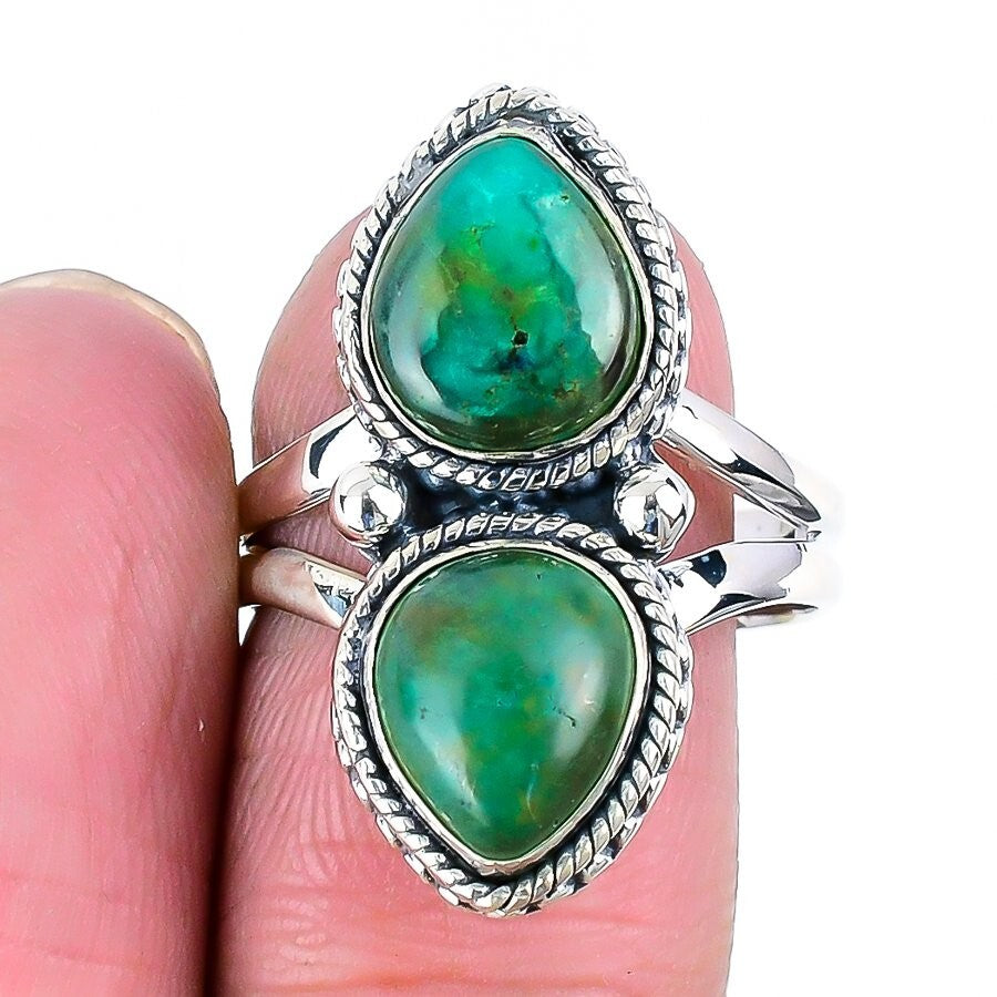 Natural Tibetan Turquoise 925 Sterling Silver Unique Boho Cluster Ring Jewelry