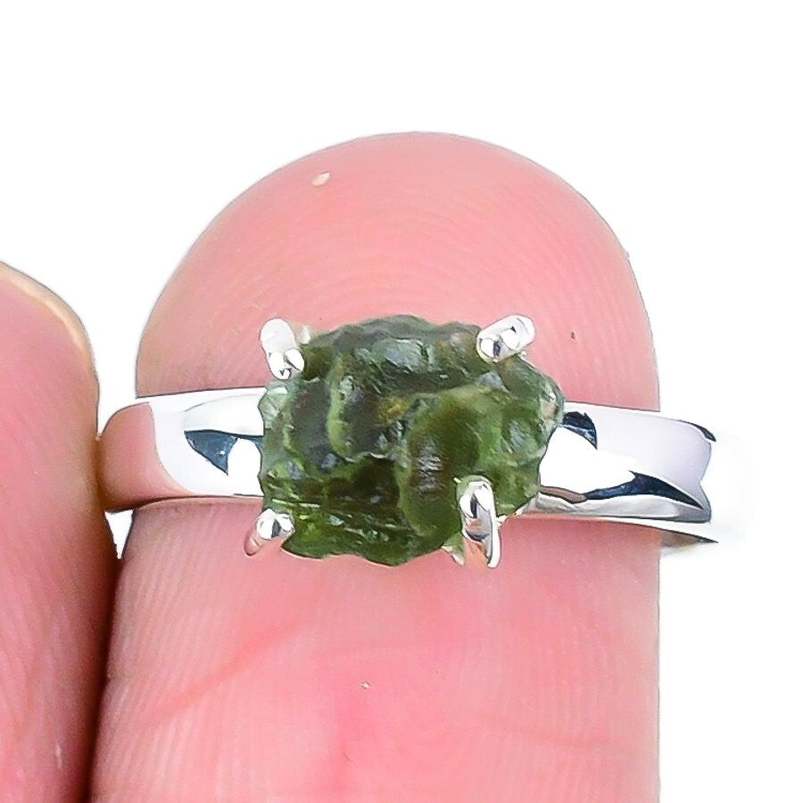 Moldavite Quartz Gemstone 925 Silver Artisan Wife Cluster Ring Jewelry Size 7.5