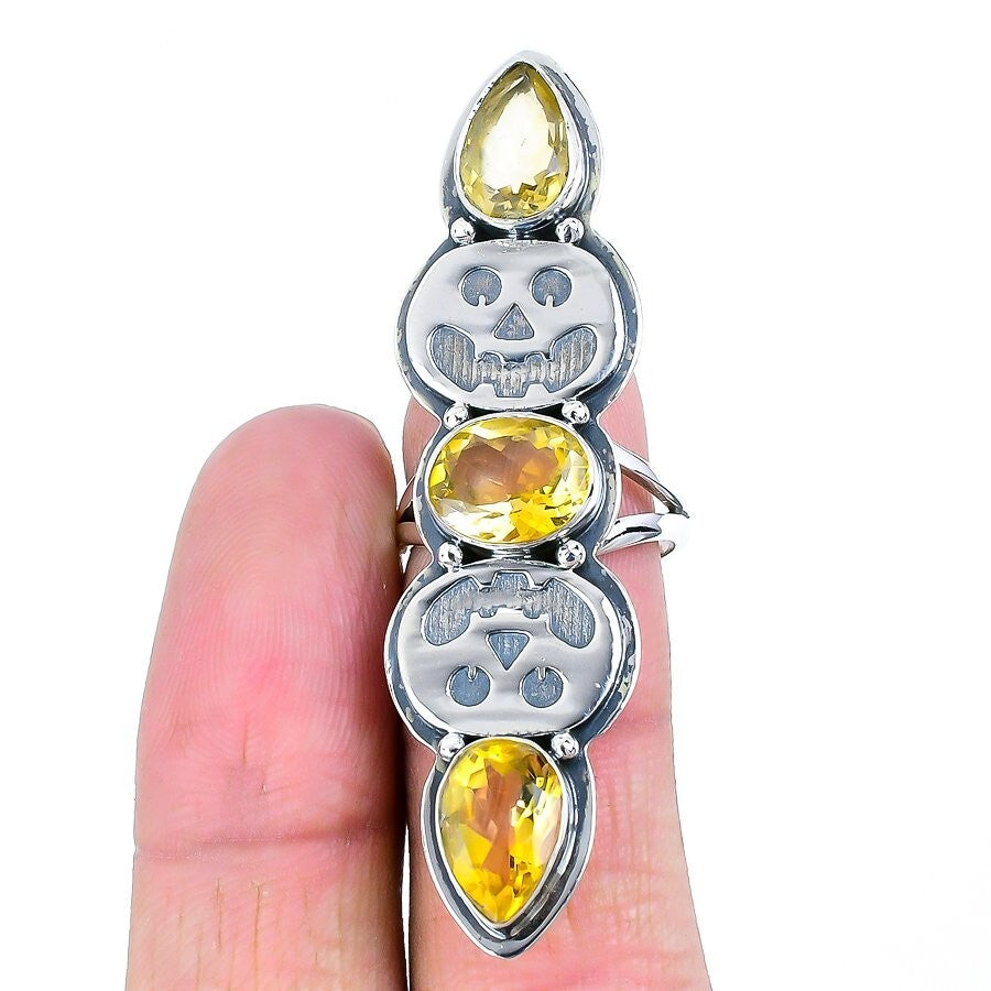 Natural Citrine 925 Silver Birthday Anniversary Cluster November New Ring Size 7