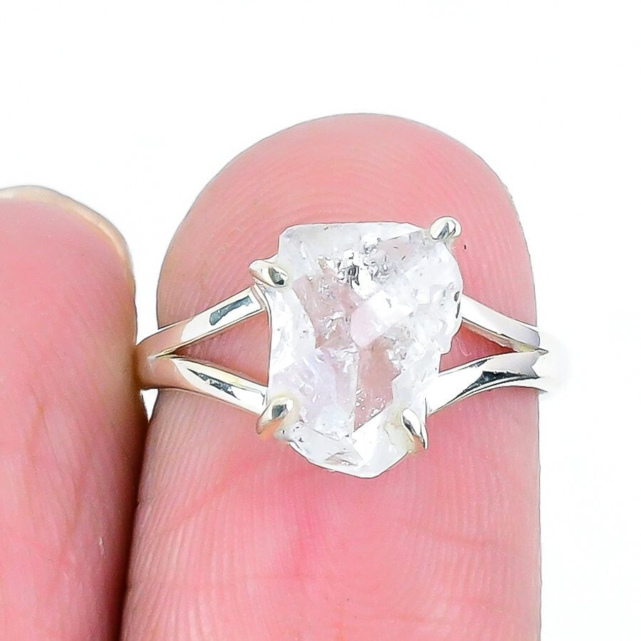 Herkimer Diamond Stone Solid Sterling Silver Boho Cluster Ring Jewelry Size 5.5
