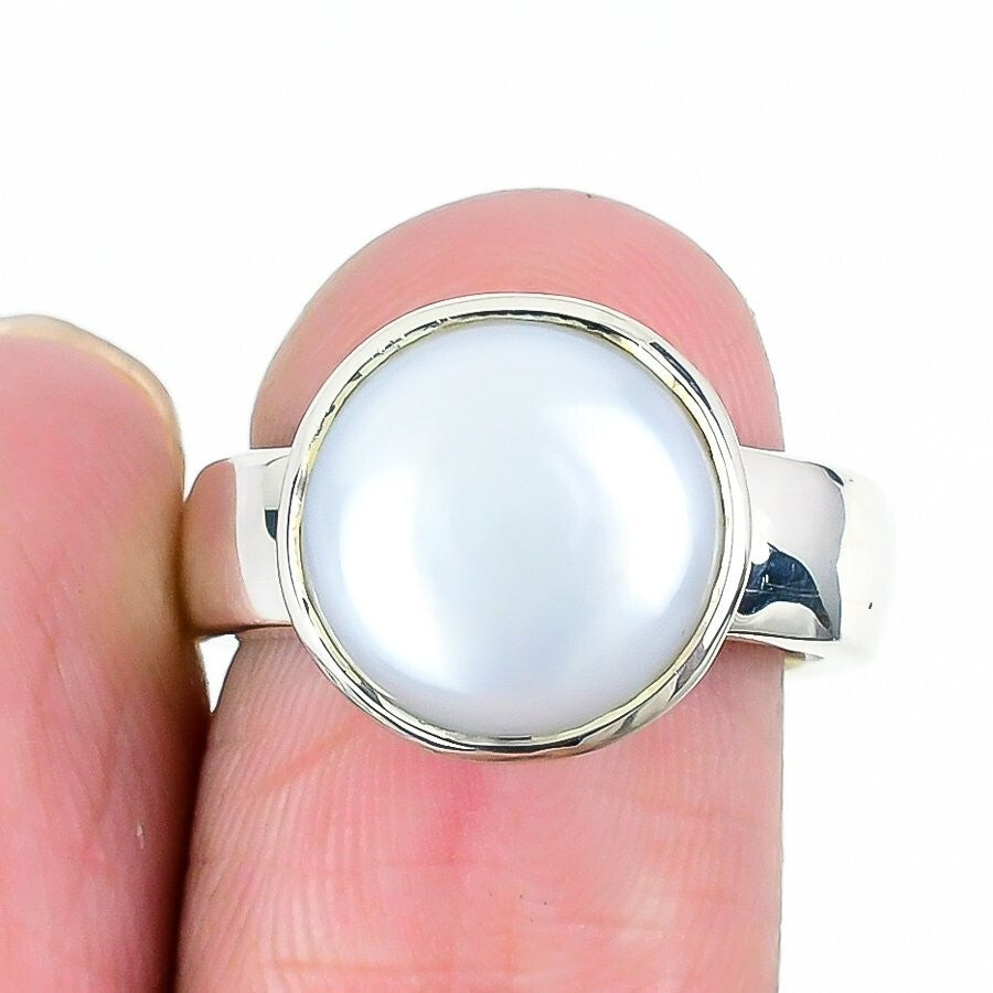 Mother Of Pearl Stone 925 Silver Cluster June Birth Sister Birthday Ring Size 7