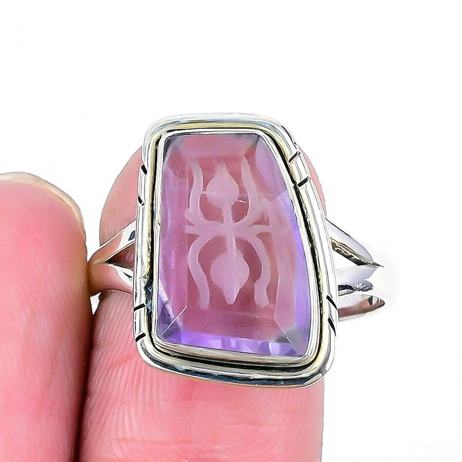 Natural Amethyst Faceted Cluster Daughter Crown Chakra Ring Size 8 Solid Silver