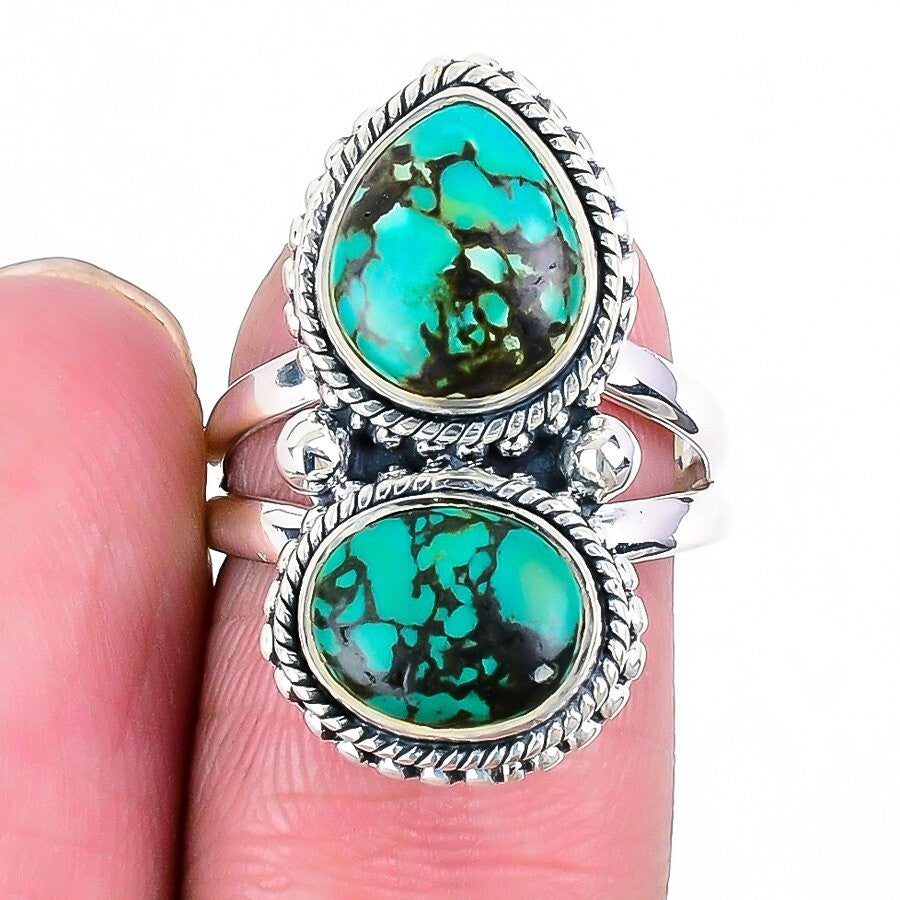 Tibetan Turquoise Gemstone Trendy Cluster Wife Ring Jewelry Size 5.5 925 Silver