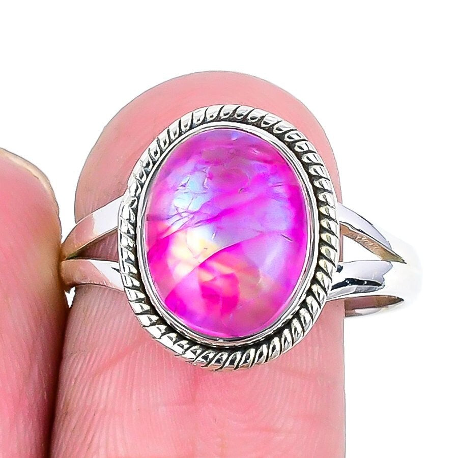 Pink Moonstone Gemstone Solid Silver Cluster Crown Chakra Birthday Ring Size 10