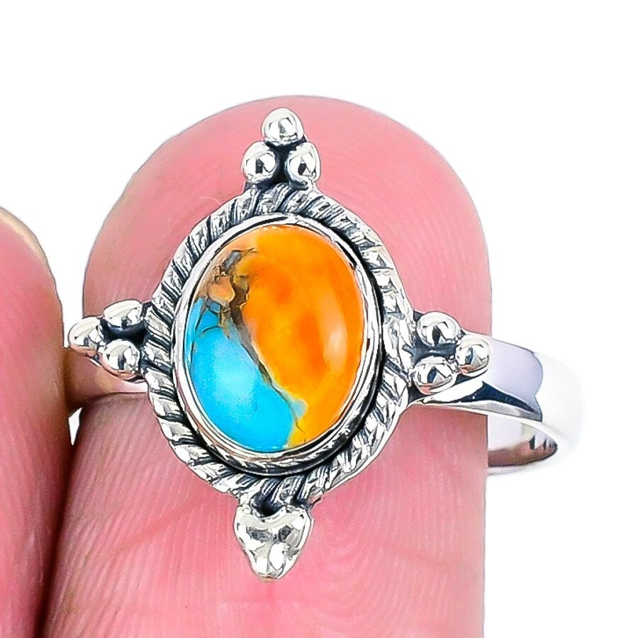 Spiny Oyster Gemstone 925 Sterling Silver Wedding Cluster Mother Ring Jewelry