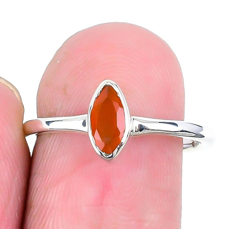 Natural Carnelian Faceted Solid Silver Cluster Art Deco Ring Jewelry Size 7.5