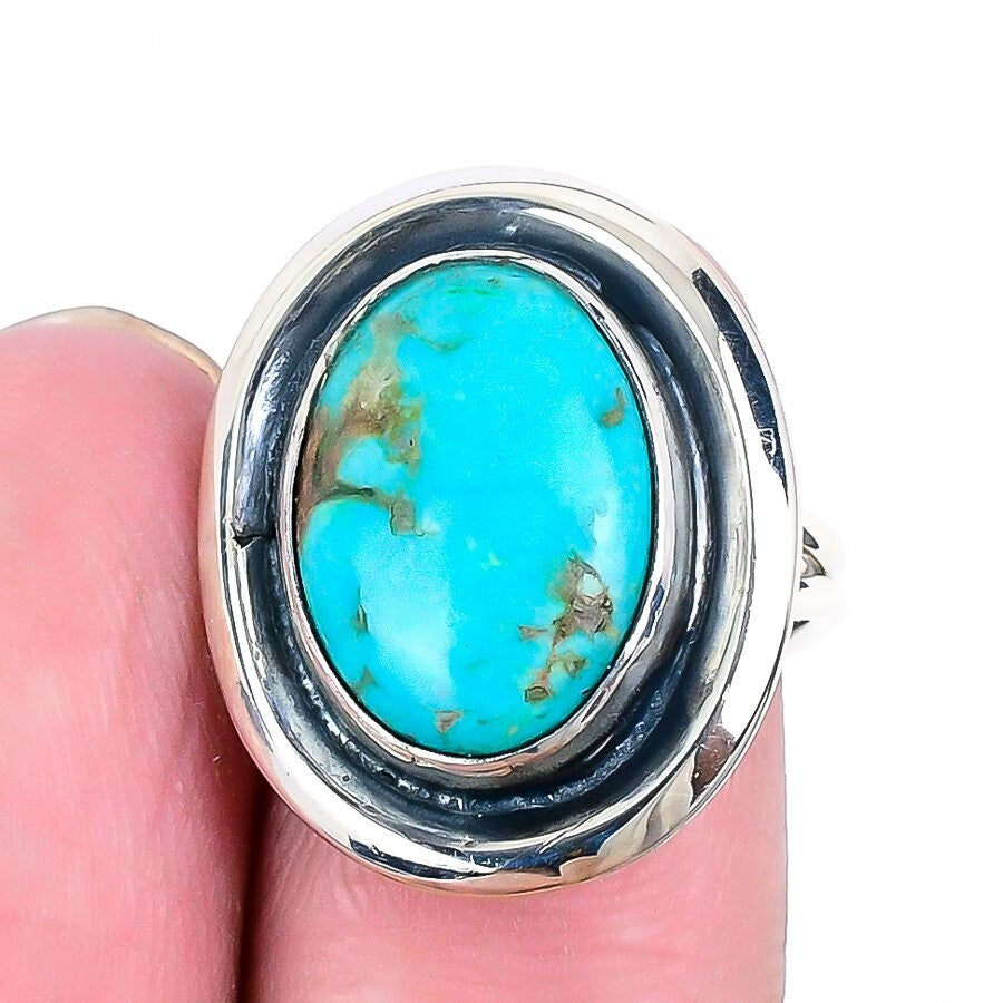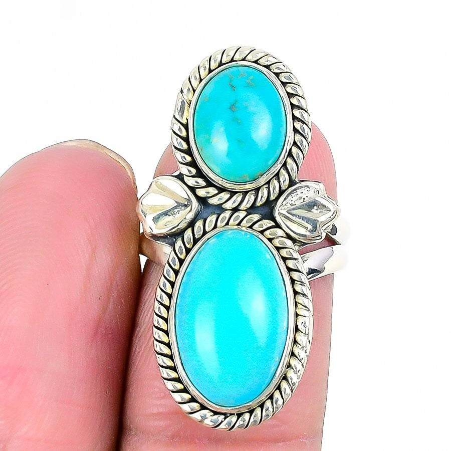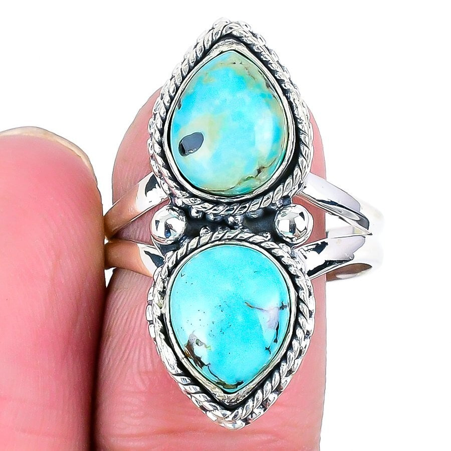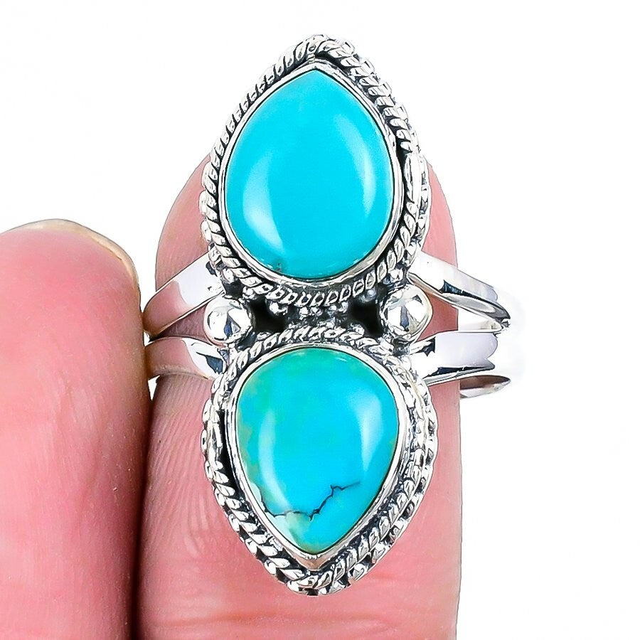 Turquoise Gemstone 925Ā SolidĀ Silver December Cluster Mother Artisan Ring Jewelry