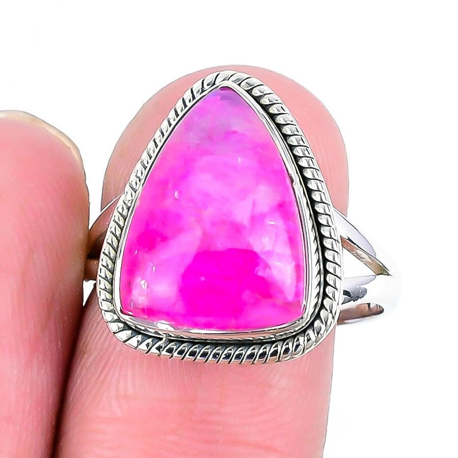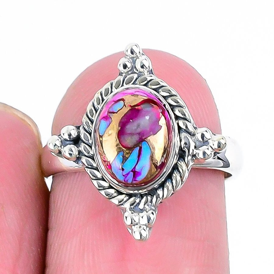 Natural Pink Oyster Wedding Cluster Engagement Wife Ring Size 6.5 Solid Silver