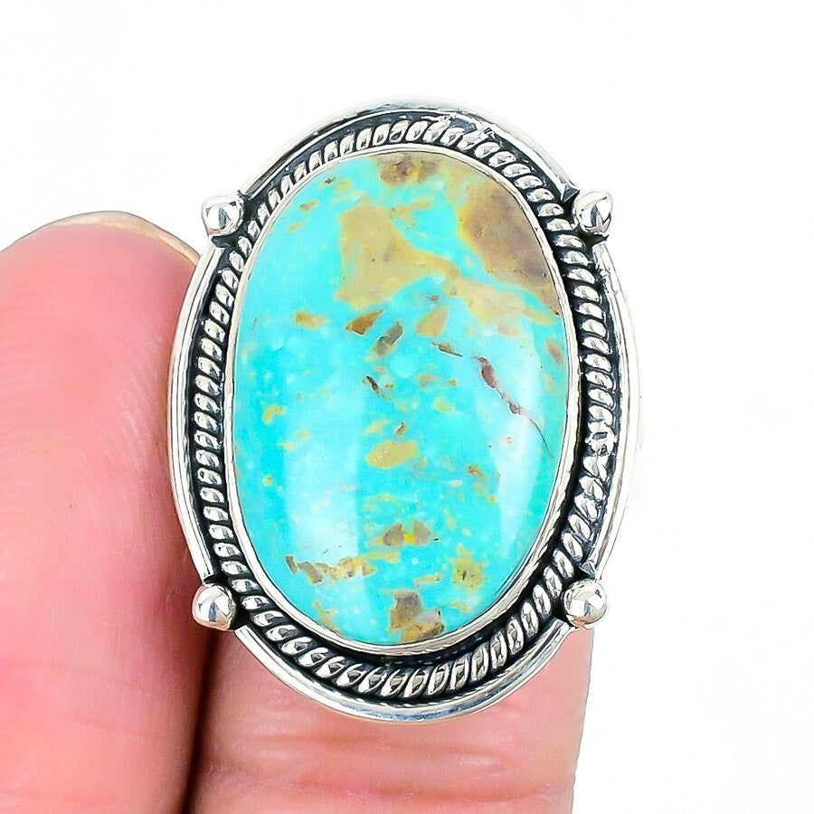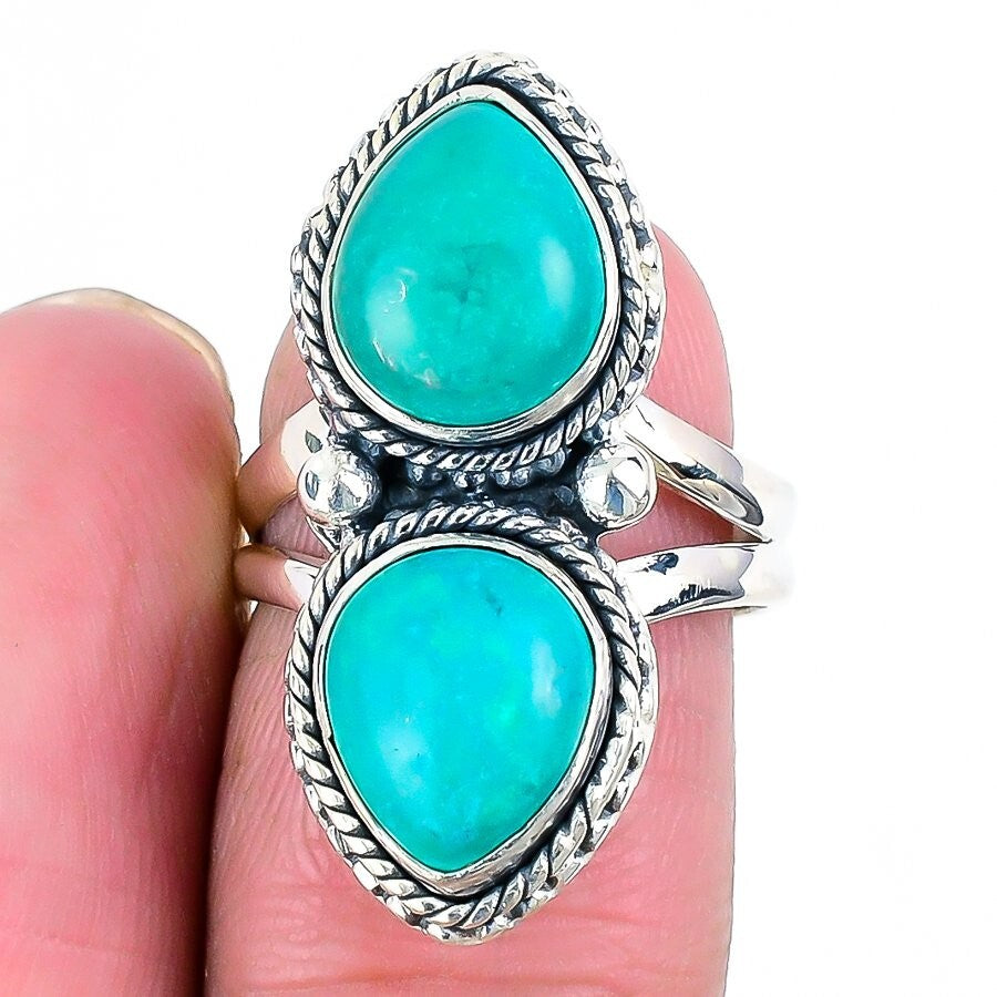 Turquoise Stone Solid Sterling Silver Cluster Mother Wedding Boho Ring Size 6.5