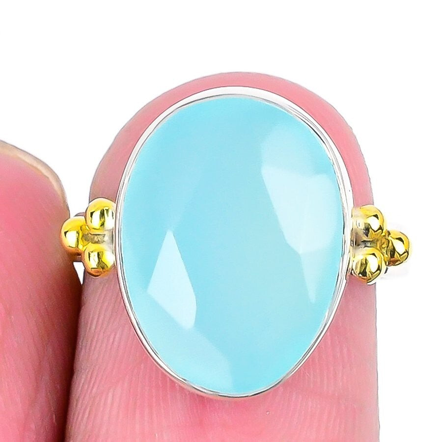 Natural Aqua Chalcedony Sterling Silver Mother Handcrafted Cluster Ring Size 7