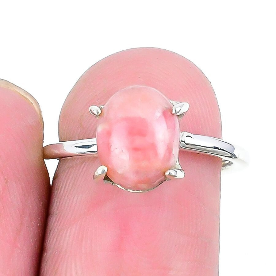 Natural Rhodochrosite 925Ā SolidĀ Silver Anniversary Cluster Daughter Ring Jewelry