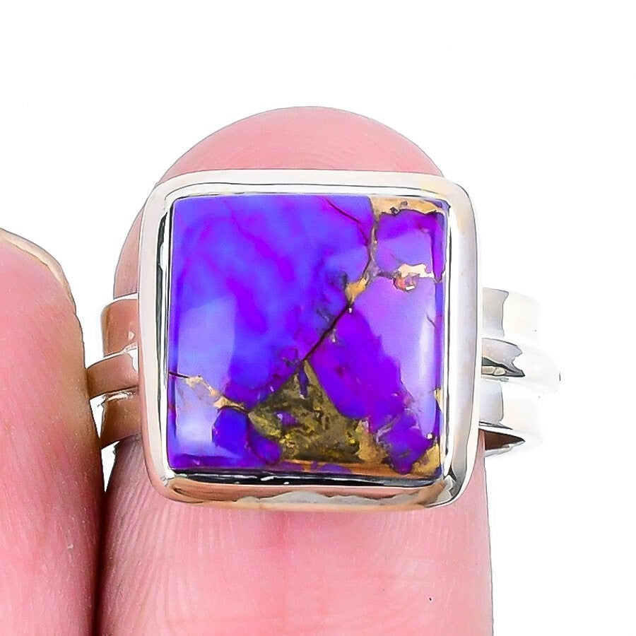 Copper Purple Turquoise Gemstone Trendy Cluster Sister Ring Size 8 925 Silver