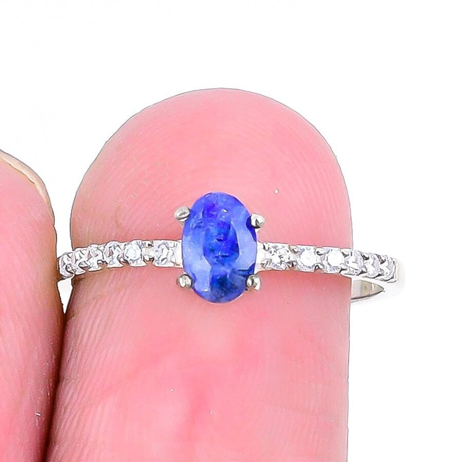 Burmise Sapphire Gemstone Solid Sterling Silver Wife Cluster Ring Jewelry Size 8