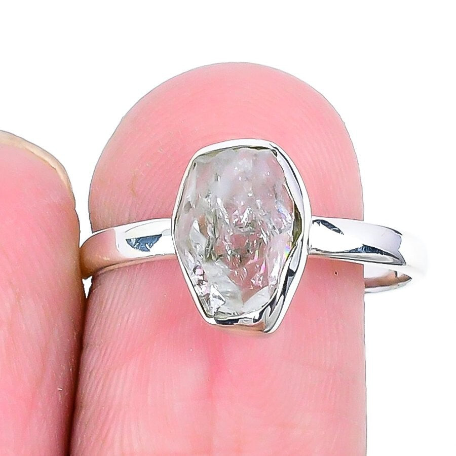 Herkimer Diamond Stone Solid Sterling Silver Elegant Cluster Ring Jewelry Size 9