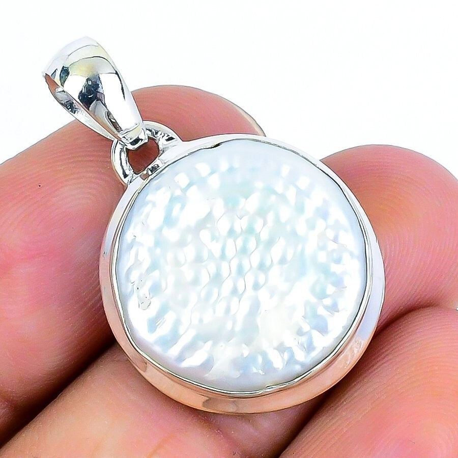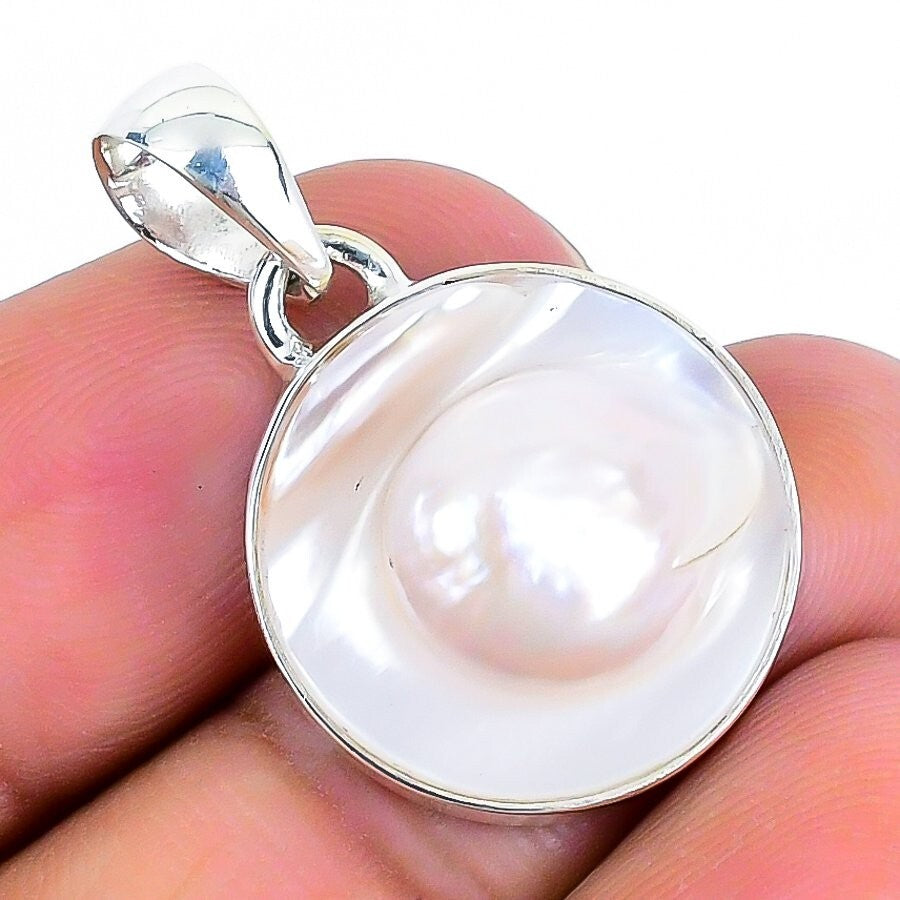 Blister Pearl Gemstone Mother Channel Set Artisan Anniversary Pendant 925 Silver