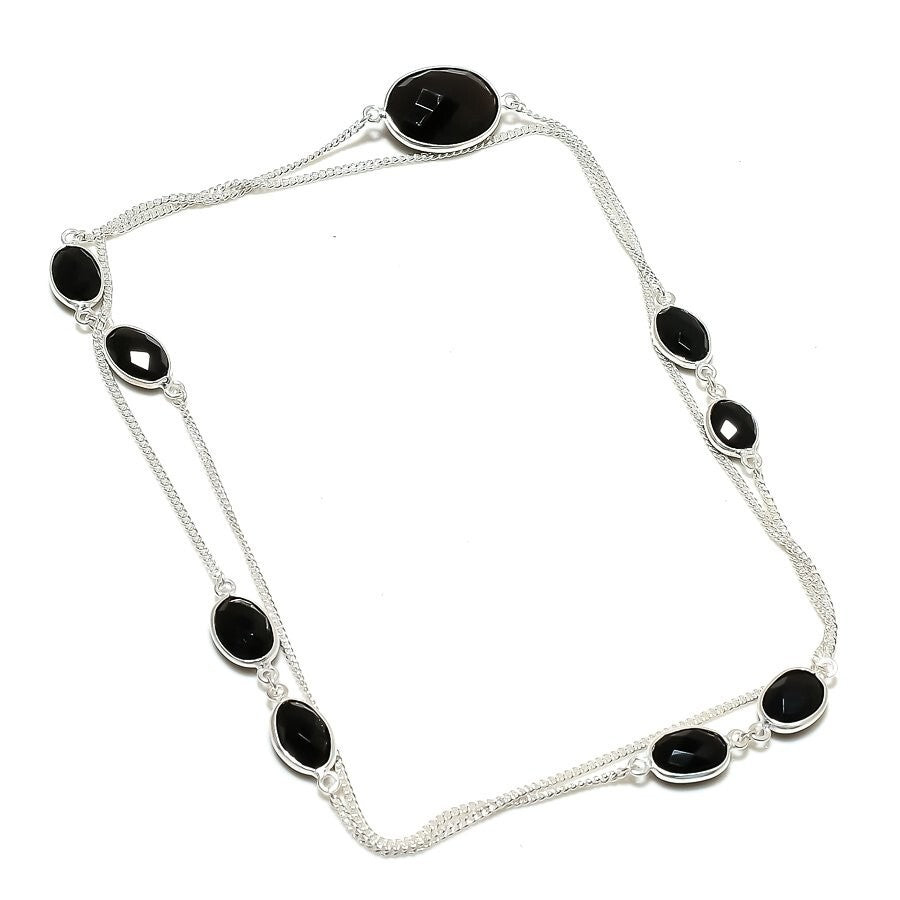 Black Spinel Gemstone Solid Silver Anniversary Wedding Chain Daughter Necklace
