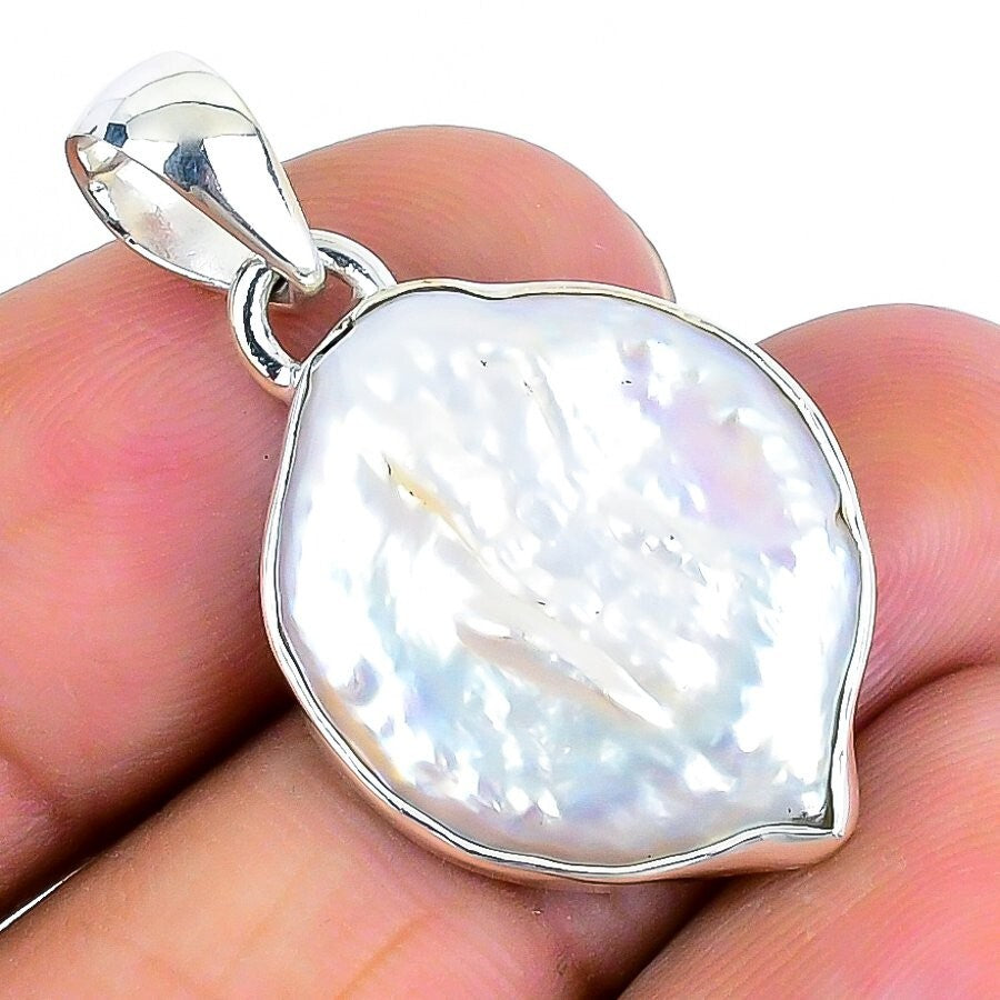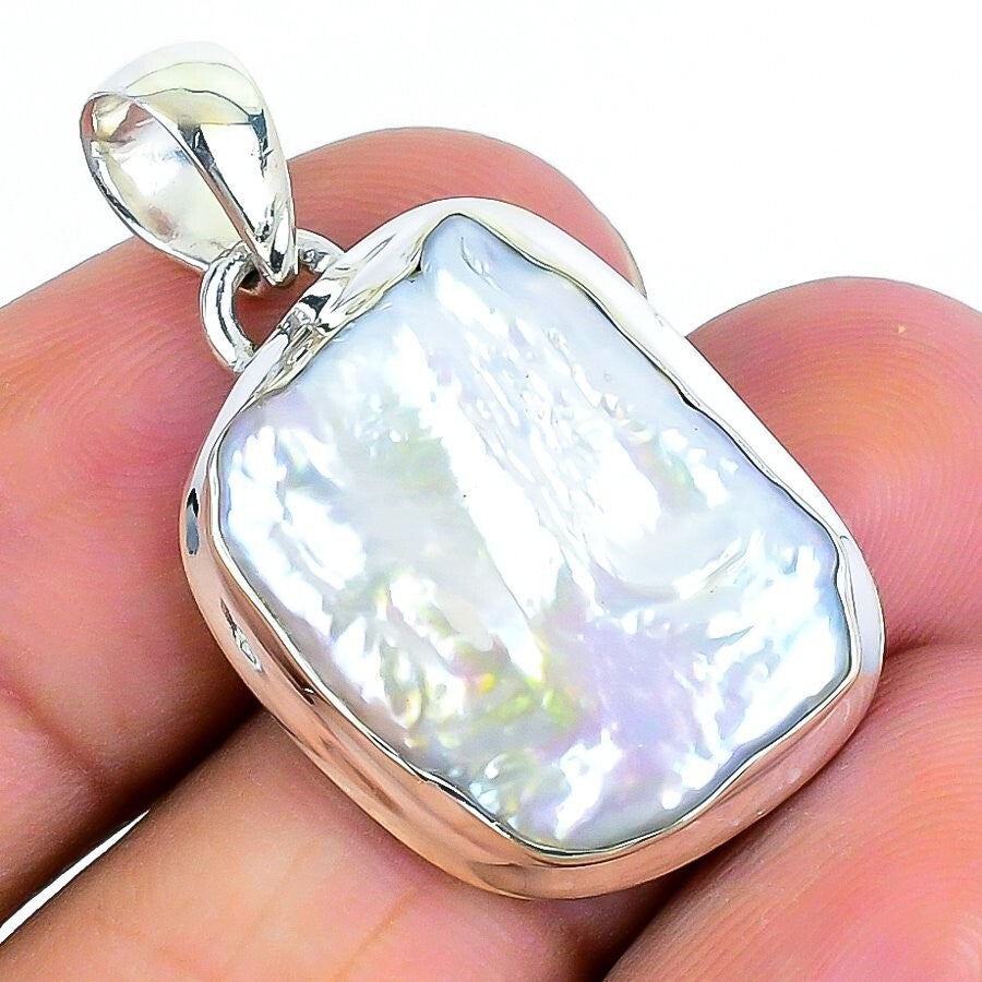 Blister Pearl Stone 925 Solid Silver Channel Set Art Deco New Pendant Jewelry